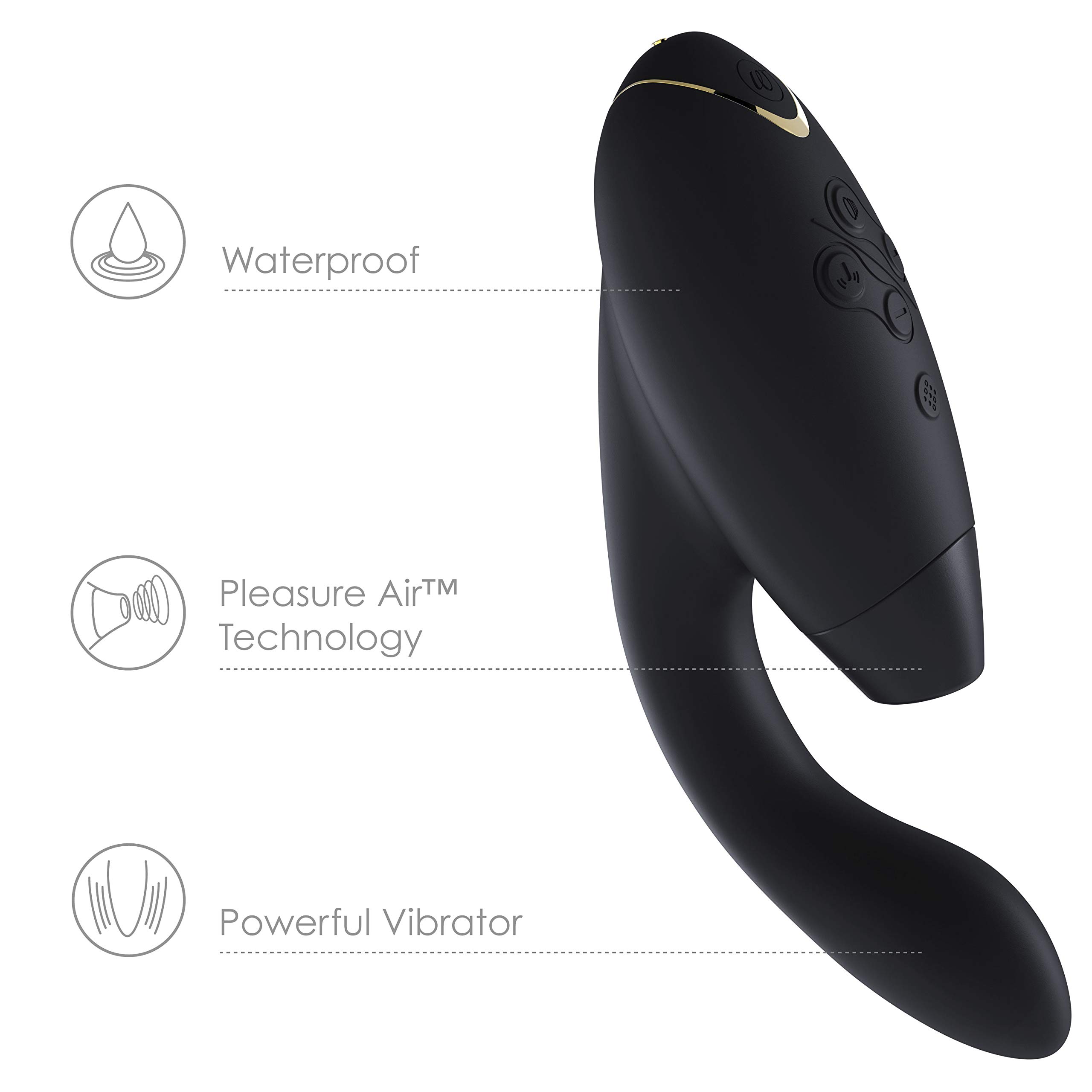 Womanizer InsideOut Black Dual Stimulation Pleasure Air Clitoris Stimulator Rabbit Vibrator & Pjur Aqua Water Based Personal Lubricant 3.4 fl oz - Female Sex Toys Bundle—